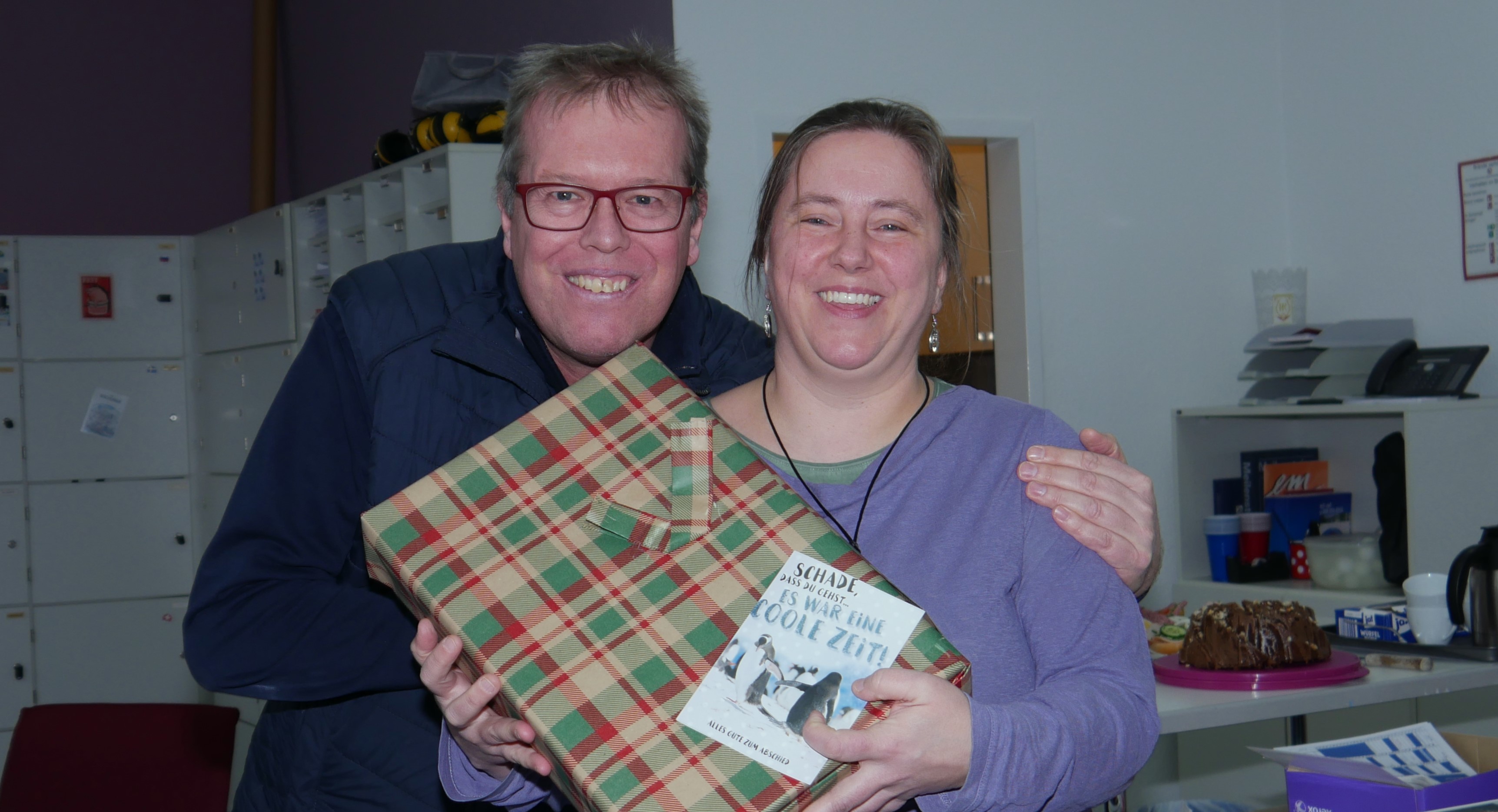 Am letzten Schultag des Herbstsemesters wurden angesichts der bevorstehenden Schließung des Riehl-Kollegs im Sommer diesen Jahres mit Liza Rudorf (am Riehl seit 2019) und Helga Wendel (am Riehl seit 2011) zwei weitere Kolleginnen feierlich von allen noch verbliebenen Kolleginnen und Kollegen verabschiedet!